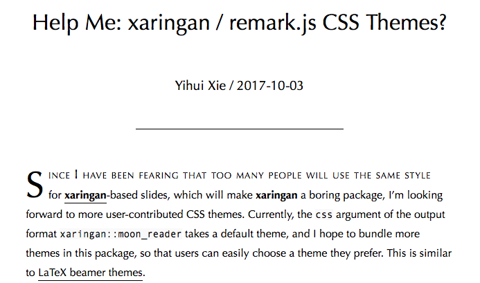 About a month after I did the R-Ladies blogdown workshop, I saw this blog post by Yihui: