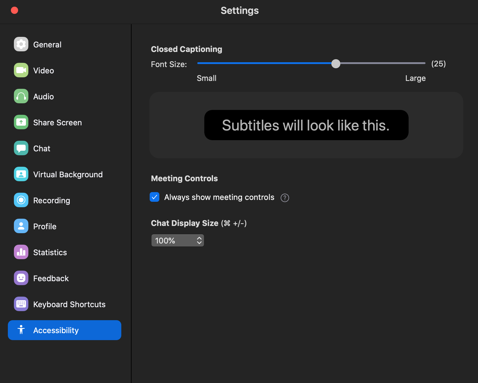 Logistically, I got really frustrated because I kept losing my Zoom meeting controls. Later I found out about this accessibility setting, which would have helped!