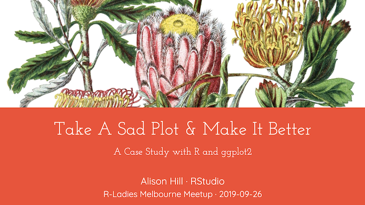 In this talk, Alison will talk about one plot’s life cycle, from a sad Powerpoint slide to an Excel chart and finally to the finished product made with the ggplot2 package in R. Along the way, she will discuss why each version of the plot fails in different ways and how each iteration improved on the last one.